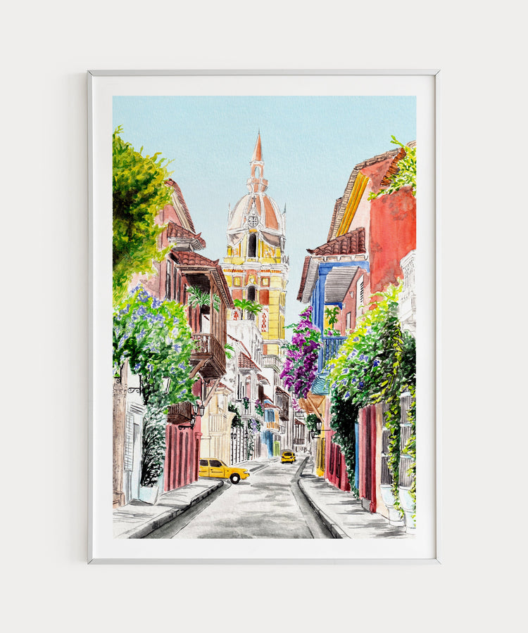 Cartagena Colombia Watercolor Wall Art, Colombian Decor, Cartagena Cityscape, South American Art Travel Gift