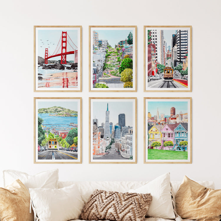 San Francisco Set of 6 Watercolor Wall Art, San Francisco Cityscape, USA Travel Art, California Decor, San Francisco Art Prints, Housewarming Gift