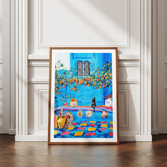 Arte mural en acuarela de la Ciudad Azul de Chefchaouen, Marruecos | Paisaje urbano marroquí | Arte de Chefchaouen | Regalo de viaje