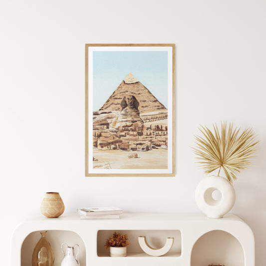 Arte mural en acuarela de las pirámides de Giza, paisaje egipcio, arte norteafricano, decoración egipcia, regalo de viaje