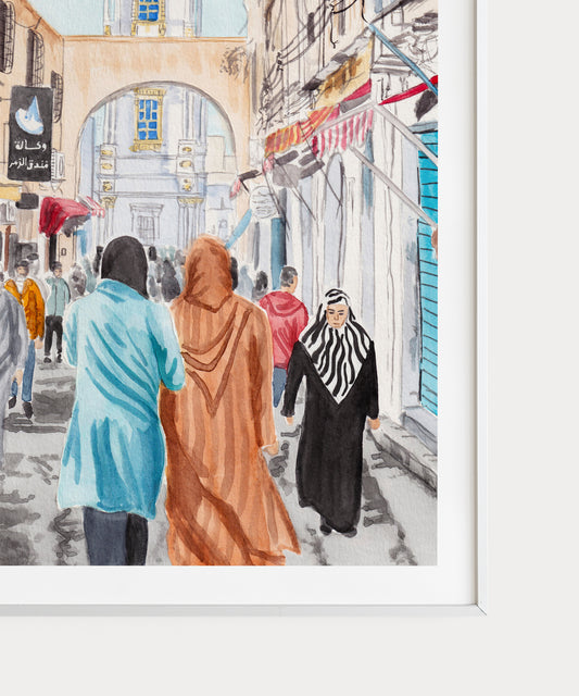 Impresión artística de acuarela de Trípoli, arte mural de Libia, paisaje urbano de acuarela de Trípoli, arte norteafricano, decoración de Libia, arte tradicional, regalo de viaje