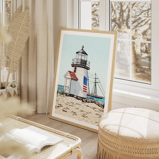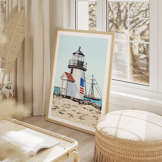 Nantucket Print, Brant Point Lighthouse, Watercolor Painting, Massachusetts Art, Coastal Landscape wall art, Nautical Wall Decor, Travel Gift
