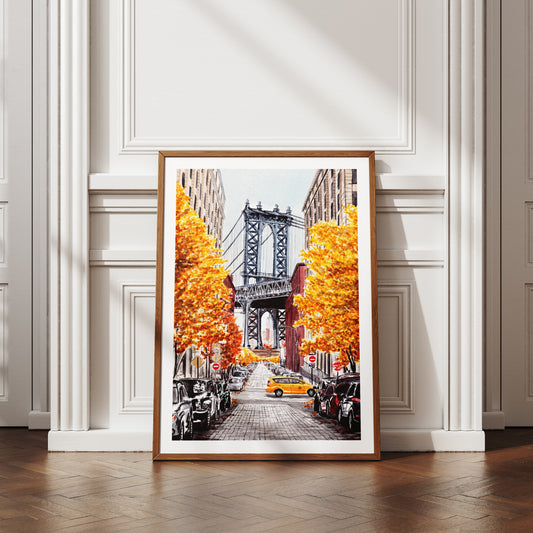 Manhattan Bridge Print, New York Wall Art, Watercolor Painting, Fall Decor, New York Cityscape, Travel Gift