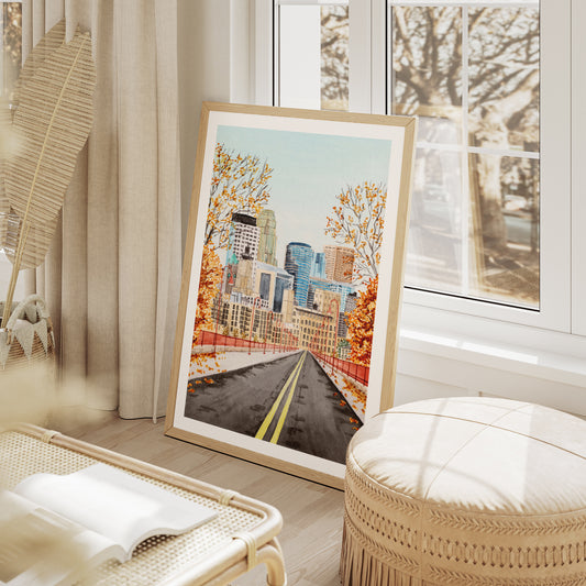 Minneapolis Watercolor Print, Minnesota Fall Wall Art, Minneapolis Cityscape, USA Travel Art