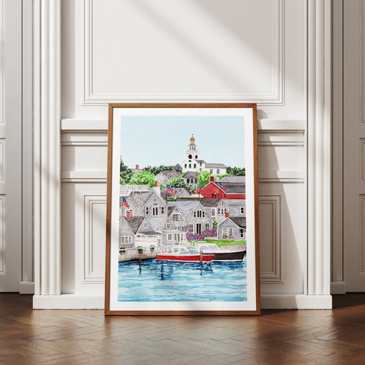 Nantucket New England Wall Art, Watercolor Painting, Massachusetts Art Print, Nantucket Landscape, United States Decor, Instant Download Art, Travel Gift