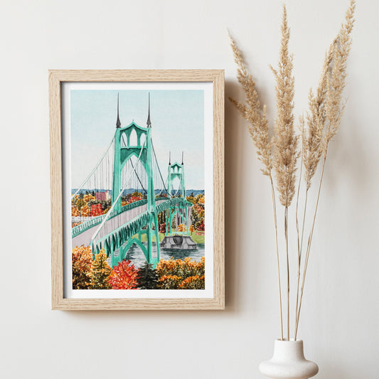 Portland Fall Wall Art, Oregon Landscape, Watercolor Painting, Portland Art Print, Portland Cityscape, Travel Gift