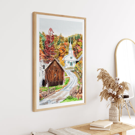 Stowe Vermont Watercolor Fall Wall Art, Vermont Landscape, Stowe Painting, USA Fall Decor, Vermont Art Housewarming Gift