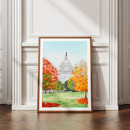 Washington DC Watercolor Fall Wall Art, Washington Cityscape, USA Housewarming Gift, Washington Travel Art
