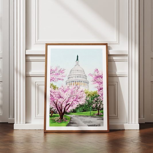 US Capitol Washington DC Watercolor Art, Spring Wall Art, USA Decor, Washington DC Travel Art