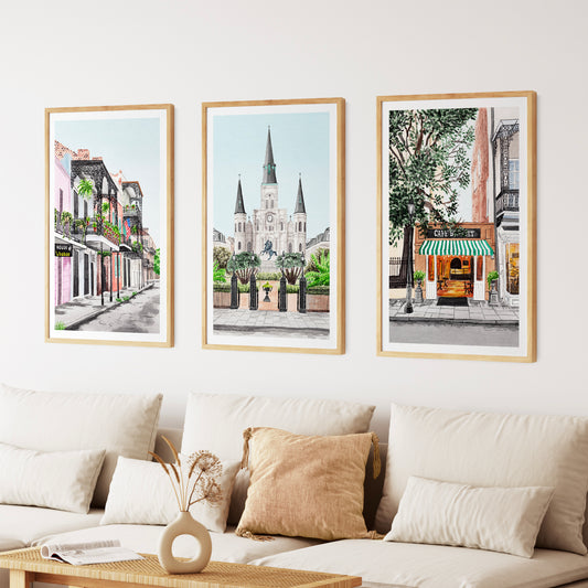 New Orleans Set of 3 Watercolor Wall Art, Louisiana Decor, French Quarter Painting, New Orleans Cityscape, Louisiana Art Print, Travel Gift