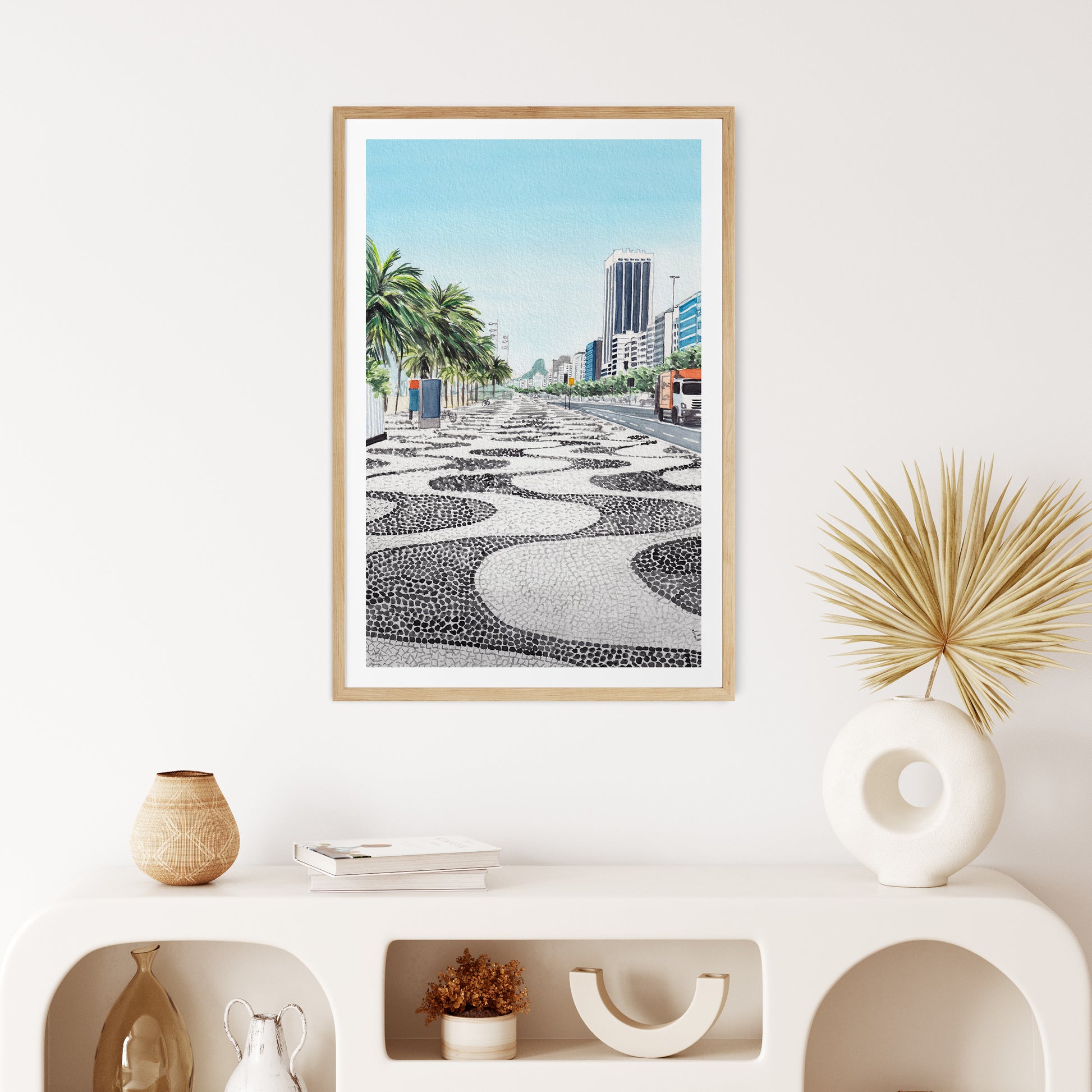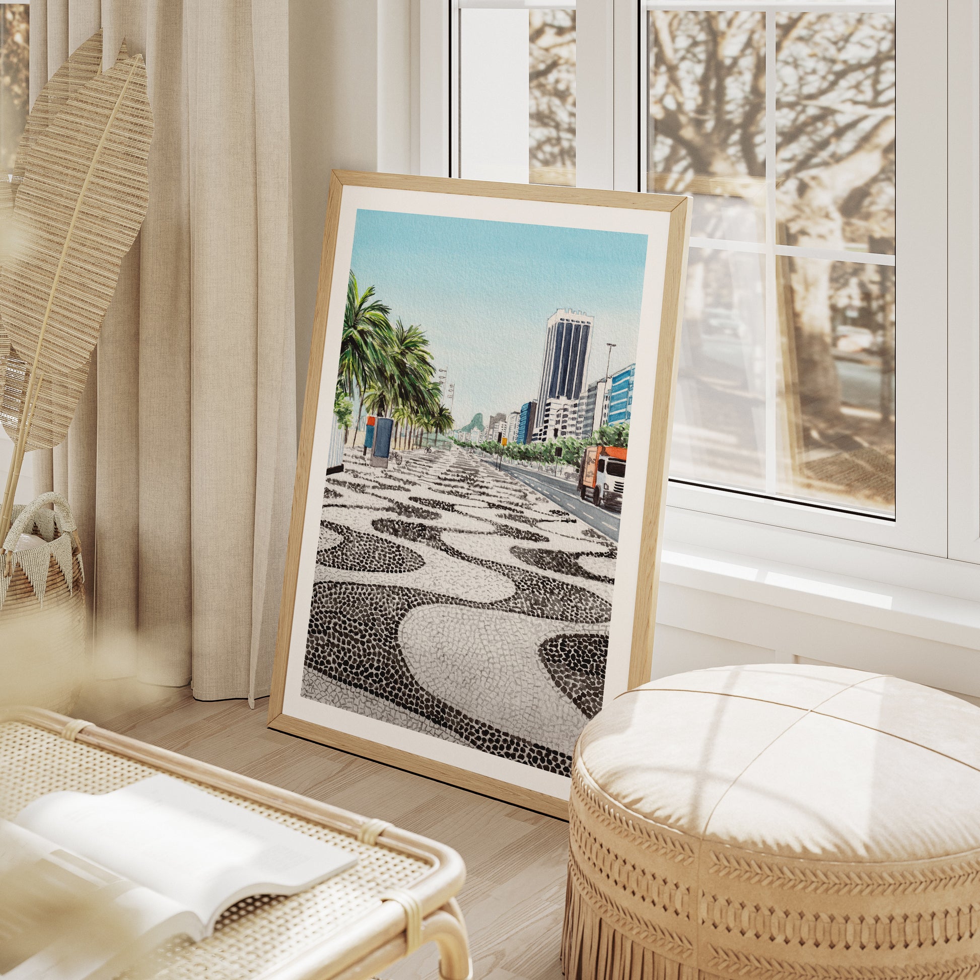 Impresión artística en acuarela de la playa de Copacabana, Río de Janeiro, Brasil | Paisaje urbano de Río de Janeiro | Regalo de viaje | Arte mural tropical