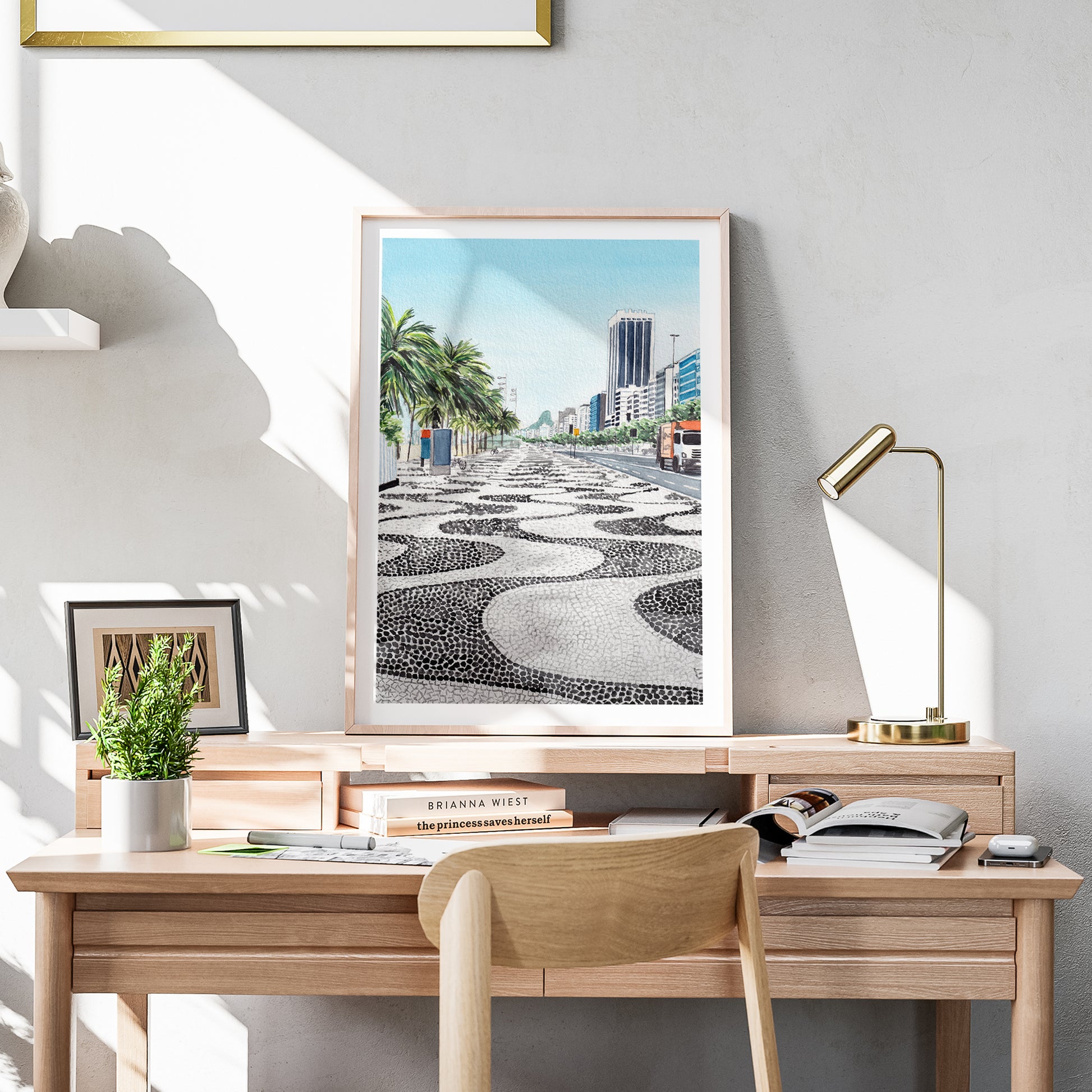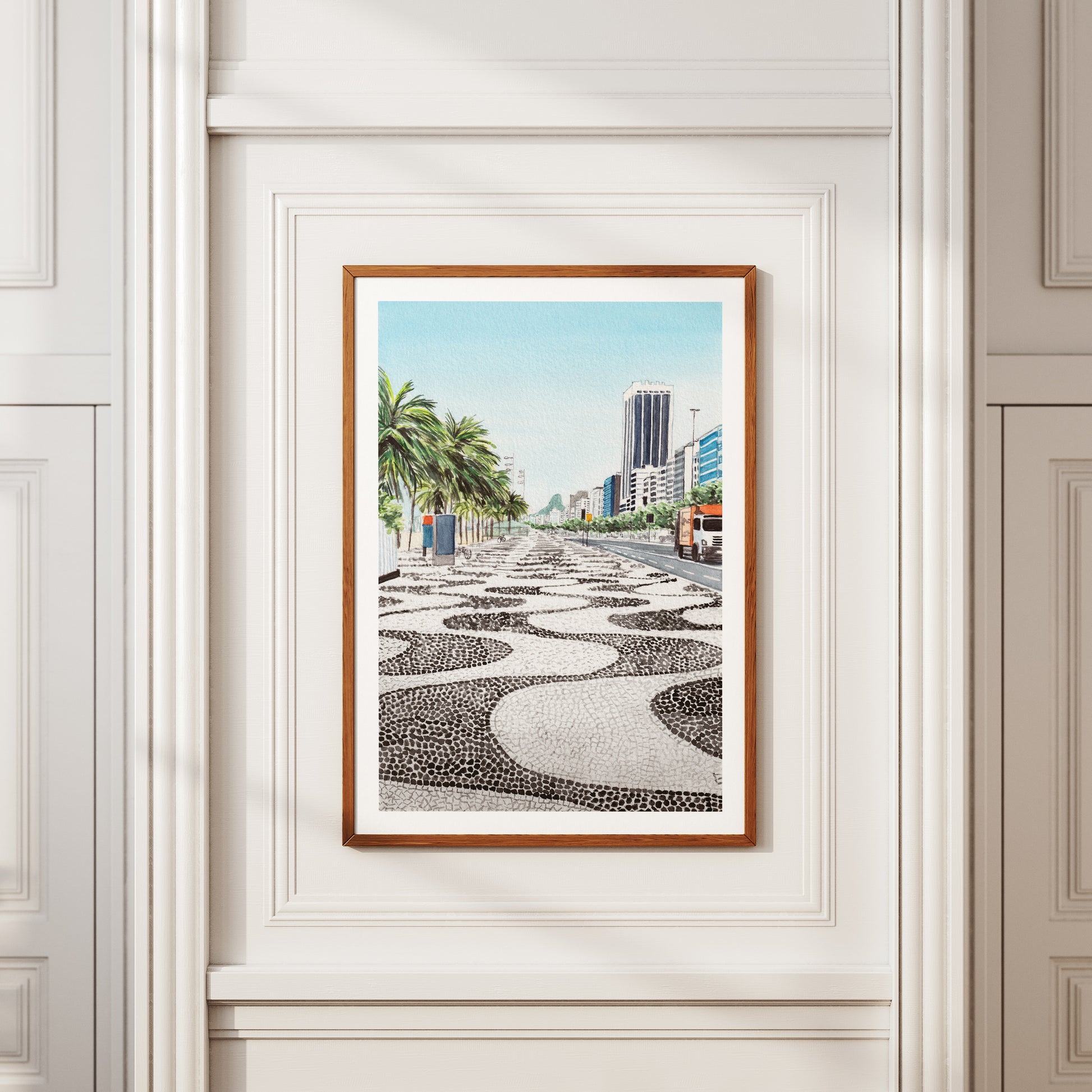 Captura el vibrante espíritu de Río de Janeiro con esta impresionante acuarela de la playa de Copacabana. Con su icónica costa, arenas soleadas y un ambiente animado, esta obra digital hecha a mano lleva la esencia de la cultura brasileña a tu espacio. Perfecta para la decoración tropical, los amantes de los viajes o cualquier persona que busque arte mural costero con un toque sudamericano. Ideal como regalo de viaje o para decorar cualquier habitación que busque un ambiente vibrante y tropical. 🏝🏙