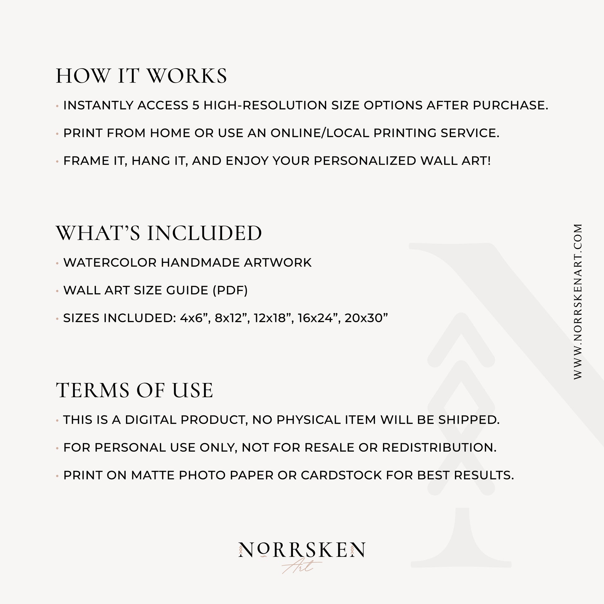 Wall Art Size Guide PDF included to help you choose the best print size for your space. Learn how to mix & match, frame properly, and create your perfect gallery wall.