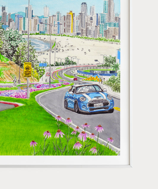 Pintura em aquarela de parede de Balneário Camboriú | Decoração brasileira | Arte sul-americana | Arte de parede costeira | Presente de viagem