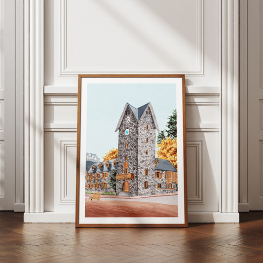 Bariloche Argentina Watercolor Wall Art, Fall Decor, Bariloche Painting, Bariloche Cityscape, South America Travel Art