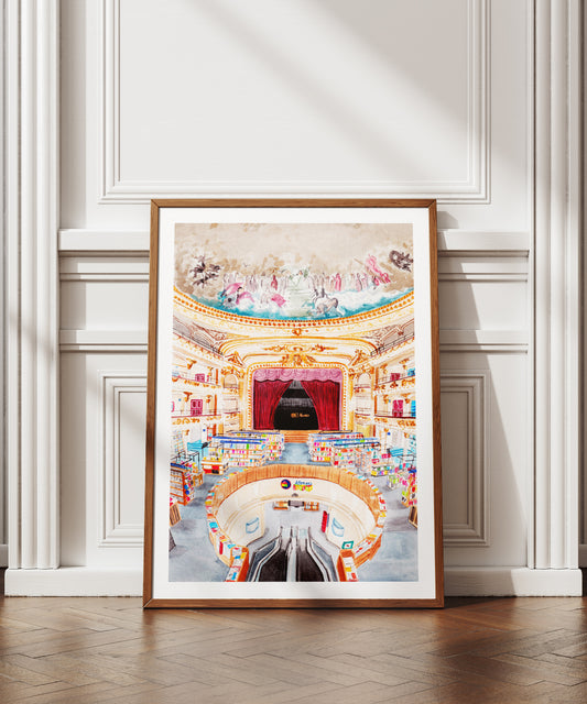 Impressão artística em aquarela "El Ateneo Grand Splendid", arte de parede para livraria em Buenos Aires, arte digital para leitores vorazes, presente de viagem para a Argentina