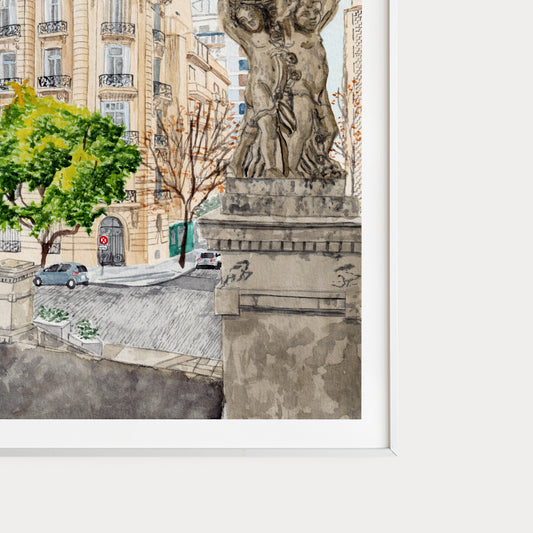 Impressão artística em aquarela da Recoleta Buenos Aires, paisagem urbana de Buenos Aires, decoração argentina, presente de viagem artístico da América do Sul