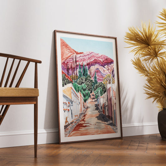 Purmamarca Jujuy Watercolor Wall Art, Argentina Landscape, Andes Mountains Art
