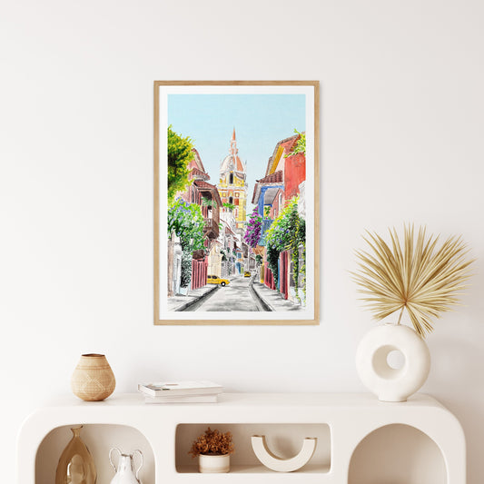 Arte de parede em aquarela de Cartagena, Colômbia, decoração colombiana, paisagem urbana de Cartagena, presente de viagem com arte sul-americana