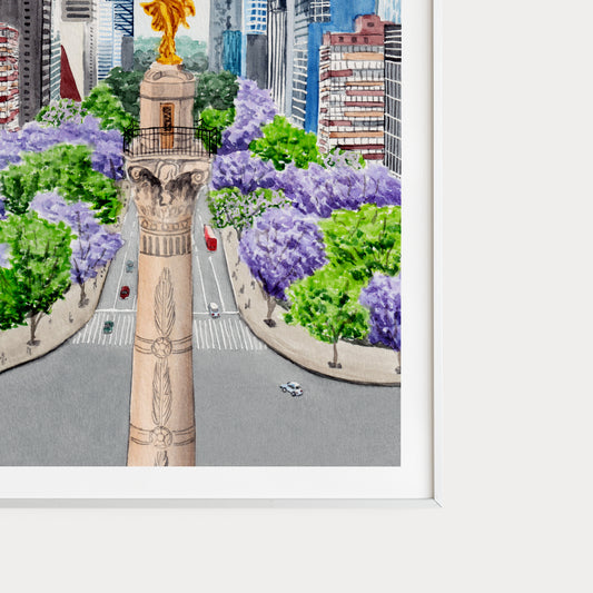Arte de parede em aquarela da Cidade do México, pintura da Cidade do México, paisagem urbana do México, decoração mexicana, arte de viagem ao México