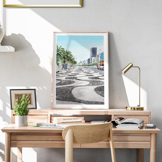 Impressão artística em aquarela da Praia de Copacabana, Rio, Brasil | Paisagem urbana do Rio de Janeiro | Presente de viagem | Arte de parede tropical