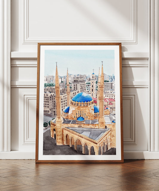 Arte de parede em aquarela de Beirute, Líbano, decoração do Oriente Médio, paisagem urbana de Beirute, arte libanesa, pintura de Beirute, presente de viagem
