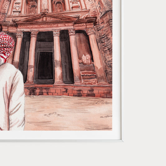 Impressão de parede em aquarela de Petra Jordan, decoração do Oriente Médio, paisagem da Jordânia, pintura de Petra, arte do deserto, presente de viagem