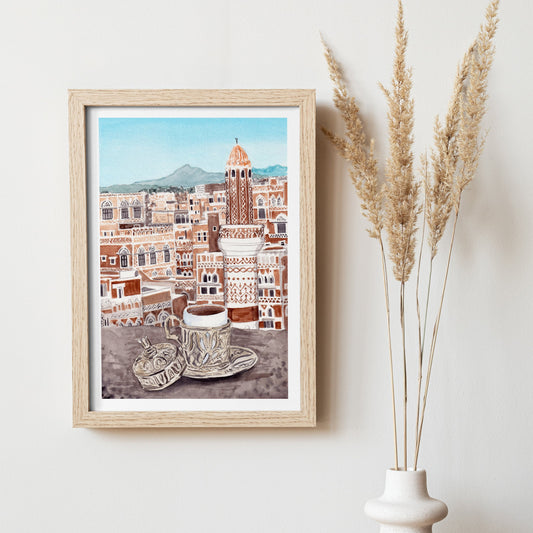 Conjunto de 6 aquarelas de parede do Iêmen, paisagens do Iêmen, impressões de arte do Iêmen, paisagem urbana de Sanaa, decoração do Oriente Médio, presente de viagem