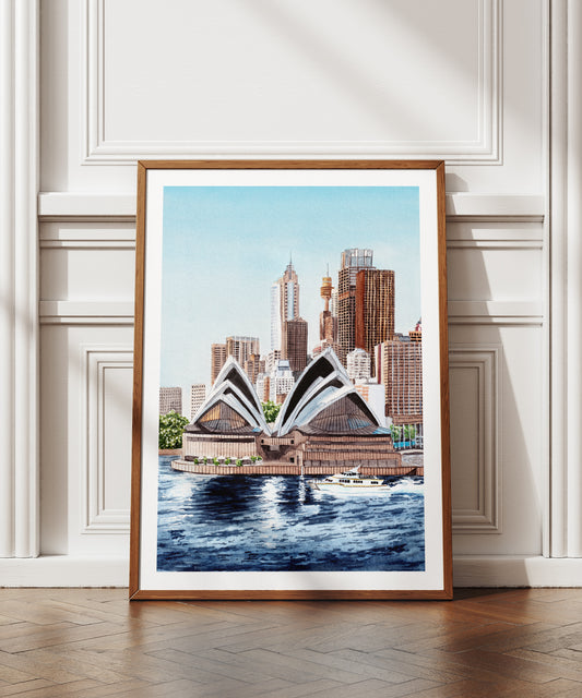 Arte de parede em aquarela de Sydney, Austrália, paisagem urbana de Sydney, decoração australiana, Ópera de Sydney, presente de viagem